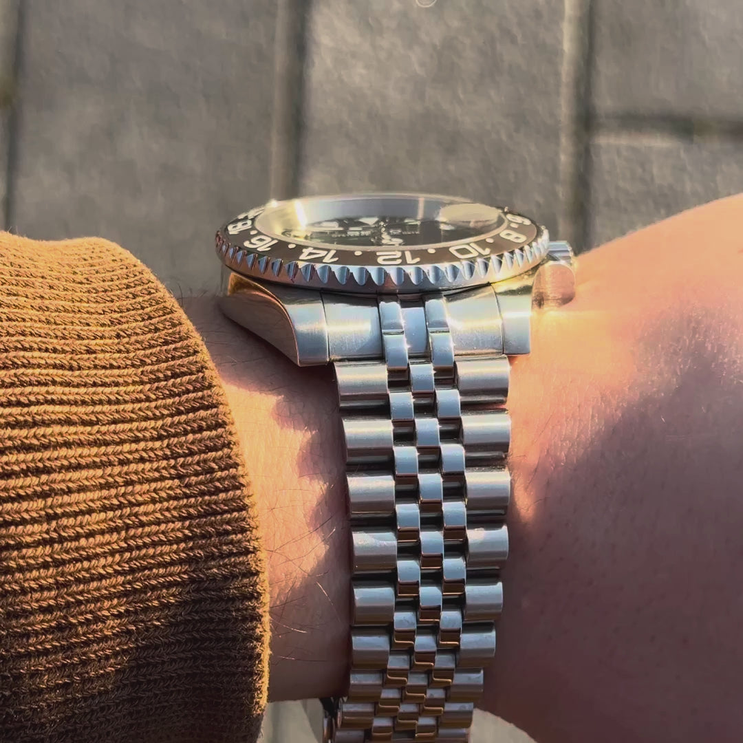 Embarquez pour un voyage au cœur du style international et de la précision horlogère avec la Seiko Bruce Wayne, un hommage raffiné à l’emblématique GMT Master II. Conçue avec soin, cette montre exceptionnelle associe design élégant, construction robuste et ingénierie de précision, faisant d’elle le compagnon idéal des globe-trotteurs et passionnés d’horlogerie.